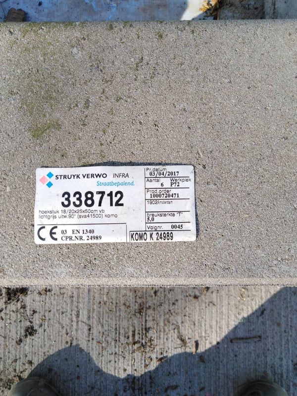 Type : Trottoirband Binnenhoekstuk 18/20x25